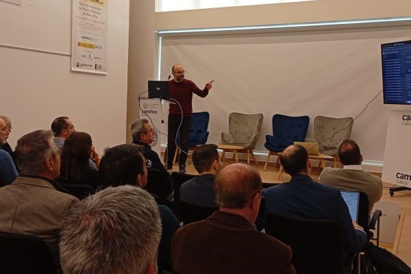 Tras esta primera presentación, Alejandro García Sardón, Francisco Carmona Martínez y Andrés Corbal Debén continuaron exponiendo la presencia de la IA en diferentes ámbitos del sector de la ingeniería civil. El primero de los ponentes, Director de Servicios Corporativos de Grupo Puentes, explicó el marco estratégico para el despliegue de la IA a nivel corporativo, poniendo como ejemplo las tareas desarrolladas en esta empresa. Francisco Carmona, socio fundador y director de tecnología de QUANTIA, habló de la IA aplicada al mantenimiento y operación de infraestructuras. Y el último de los ponentes, jefe de oficina técnica en Constructora San José, expuso ejemplos prácticos de la aplicación de la IA en el día a día de un técnico de obra.