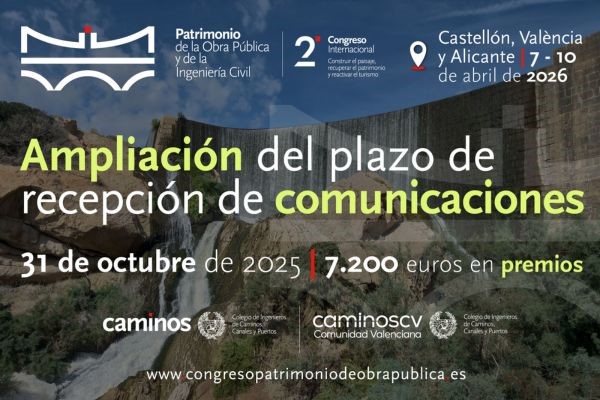 El Comité Técnico del II Congreso Internacional de Patrimonio de la Obra Pública y de la Ingeniería Civil ha ampliado la recepción del resumen de la propuesta de comunicaciones hasta el 31 de octubre de 2025.