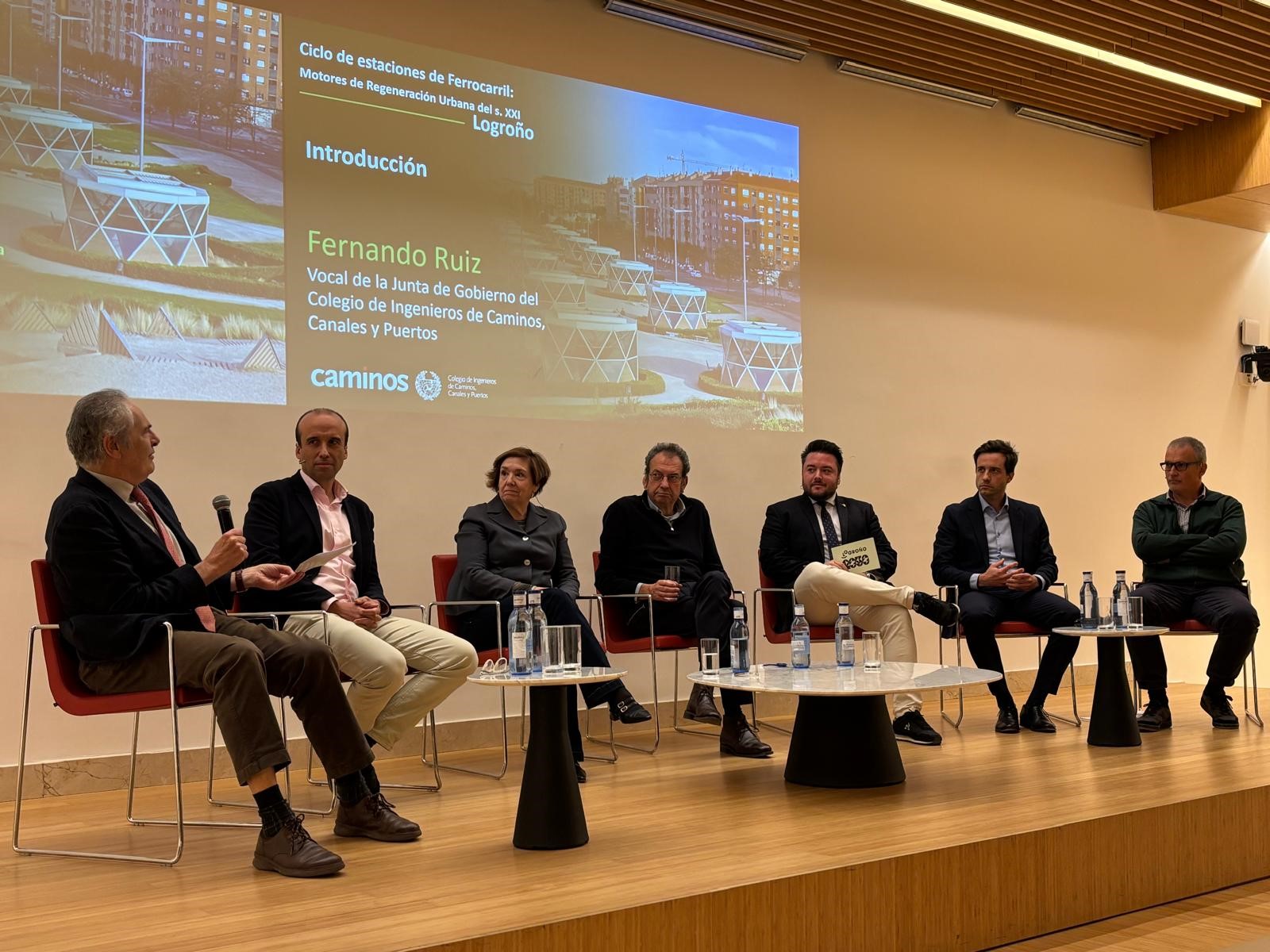 El Colegio de Ingenieros de Caminos, Canales y Puertos celebró ayer la sexta sesión del Ciclo de Estaciones de “Estaciones de Ferrocarril: Motores de Regeneración Urbana del siglo XXI" dedicada a la Estación Intermodal de Logroño. En la jornada intervinieron: Arcadio Gil Pujol, presidente del Comité Técnico de Agenda Urbana, Ciudades y Patrimonio del Colegio inauguró la sesión: “La regeneración urbana es un tema importantísimo para la ciudad y los ingenieros de caminos queremos recuperar terreno urbano”. Tras la apertura, Fernando Ruiz Ruiz de Gopegui, Vocal de la Junta de Gobierno dio paso a las ponencias y posterior coloquio reivindicando “el cambio de nombre de la estación del AVE” en una estación donde el proyecto de integración ferroviaria en Logroño consta de 3 estrategias: marcos y articulación, fórmulas de financiación y estrategia técnica de la operación”, según aseguró Mari Cruz Gutiérrez, Directora Técnica, Logroño Integración del Ferrocarril 2002 (LIF). La integración del parque centró la atención ya que se quiso "sorprender intentando colonizar cada m2 para uso y disfrute de la ciudad y la colina permitió hacer una bóveda galáctica, más propia del siglo XXIII donde la incidencia de la luz natural fuera muy importante”, comentó Iñaki Ábalos, de Abalos+Sentkiewicz.Por su parte, Jordi Nebot, de Arquitectura Agronomia SLP habló del “equilibrio entre la vegetación de lo salvaje y lo trabajado" buscando "aprovechar el territorio con caminos, terrazas y gramajes para dárselo a la ciudad y la gente y consiguiendo adaptarse a los requerimientos de los arquitectos para cumplir con el proyecto solicitado, incluso con los setos haciendo reminiscencias de los jardines ingleses o franceses”.