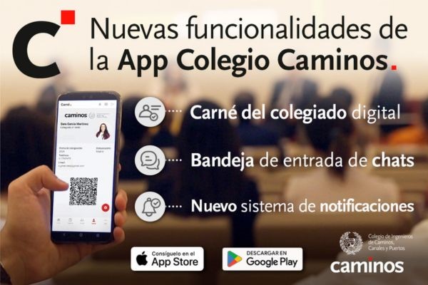 La versión 2.0 de la App “Colegio Caminos” incorpora un sistema de identificación colegial oficial a través del nuevo Carné Colegial digital e integra nuevas funcionalidades diseñadas para mejorar la experiencia de usuario y fomentar la comunicación entre colegiados.